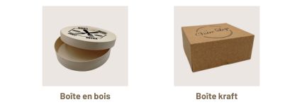 Vous pouvez désormais personnaliser facilement vos boîtes en bois et/ou vos boîtes kraft à partir de 100 unités, dans un délai de 4 à 6 semaines.