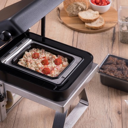 Voici la thermoscelleuse professionnelle nommée Celotop. Il vous suffit d’un geste simple pour déclencher le cycle de mise en pression automatique, sans avoir à gérer le temps de scellage. De plus, aucun effort n’est demandé à l’opérateur pendant le cycle. Une fois scellée, la barquette vous apportera des résultats d’étanchéité garantis. Le concept est adapté à toutes préparations de type plats cuisinés, soupes, sauces, liquides… La thermoscelleuse Celotop saura conditionner vos préparations, même en présence d’huile ou de graisse sur la barquette. Grâce à la soudure entre le film et la barquette, la résistance et l’étanchéité seront irréprochables. De nombreuses tailles et contenances de barquettes sont disponibles pour cette machine.